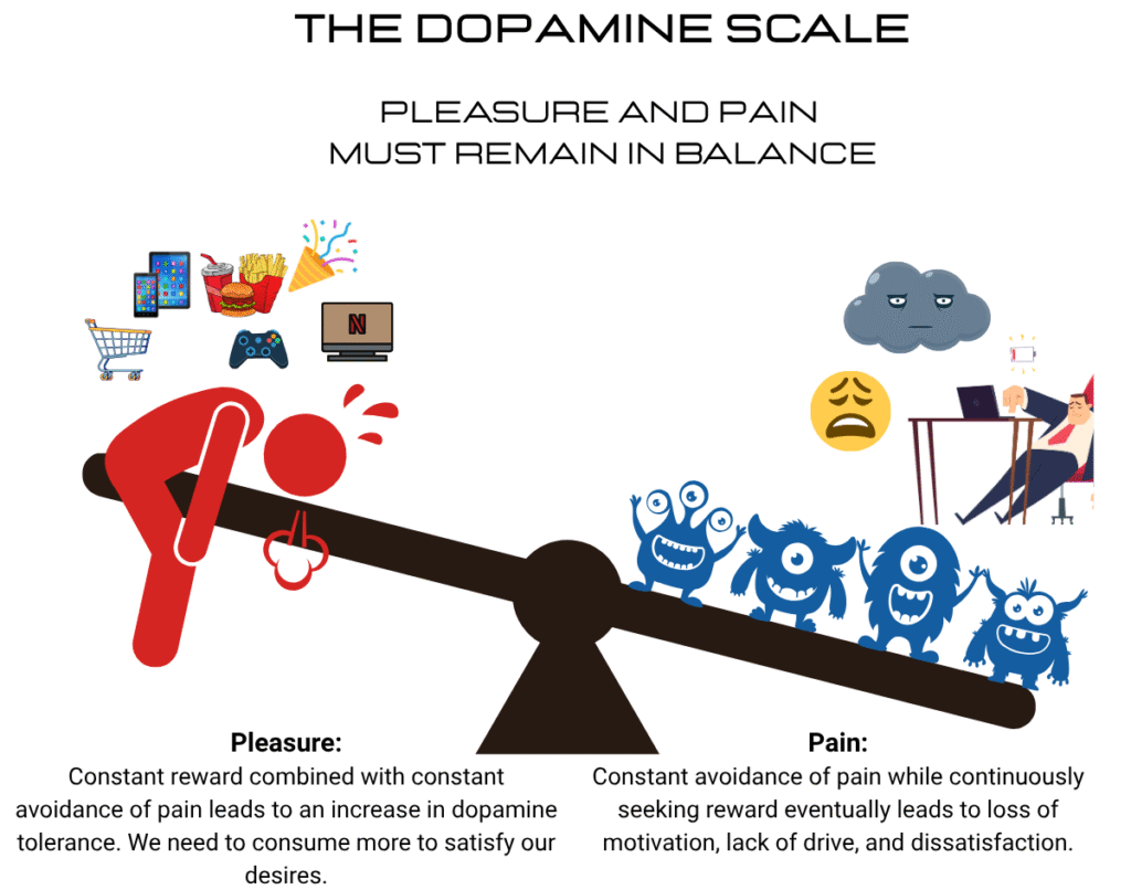 As Dr. Anna Lembke explains in her book Dopamine Nation, pleasure and pain are two sides of the same coin. They are meant to stay in balance. This is a natural principle that has guided human survival for thousands of years.