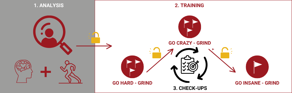 - Based on the results, we create your personalized Grind Plan – your individual training and mental strength program.